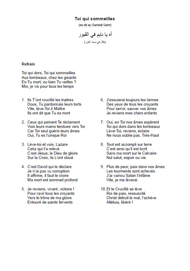Toi qui dors Toi qui sommeilles Aux tombeaux chez les gisants Es-tu mort ou bien tu veilles Moi je suis vivant toujours